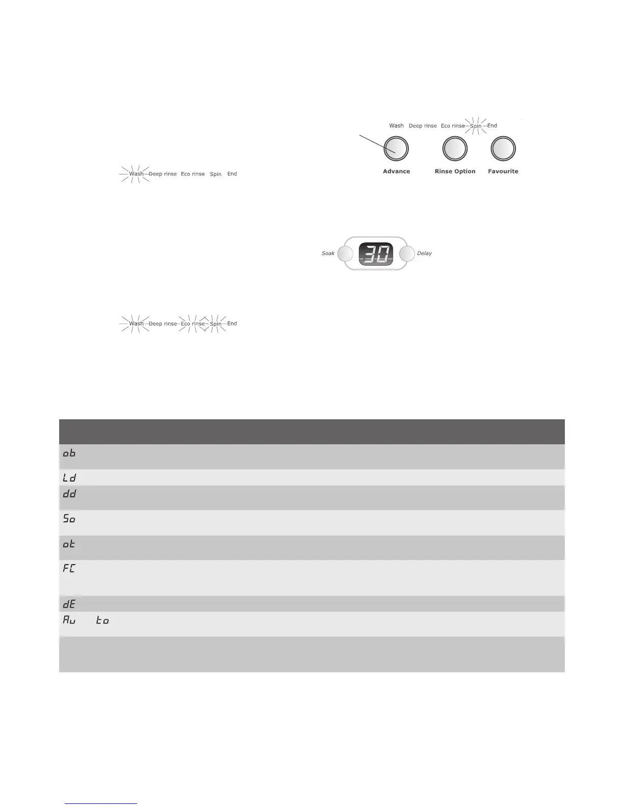 Other codes Accompanied by many ‘beeps’. The machine is informing you of a fault with the washing machine