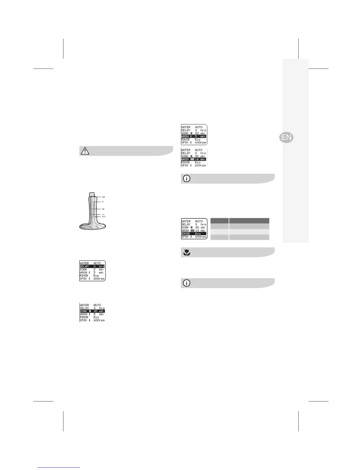 (see below). For manual water levels, the machine will fill