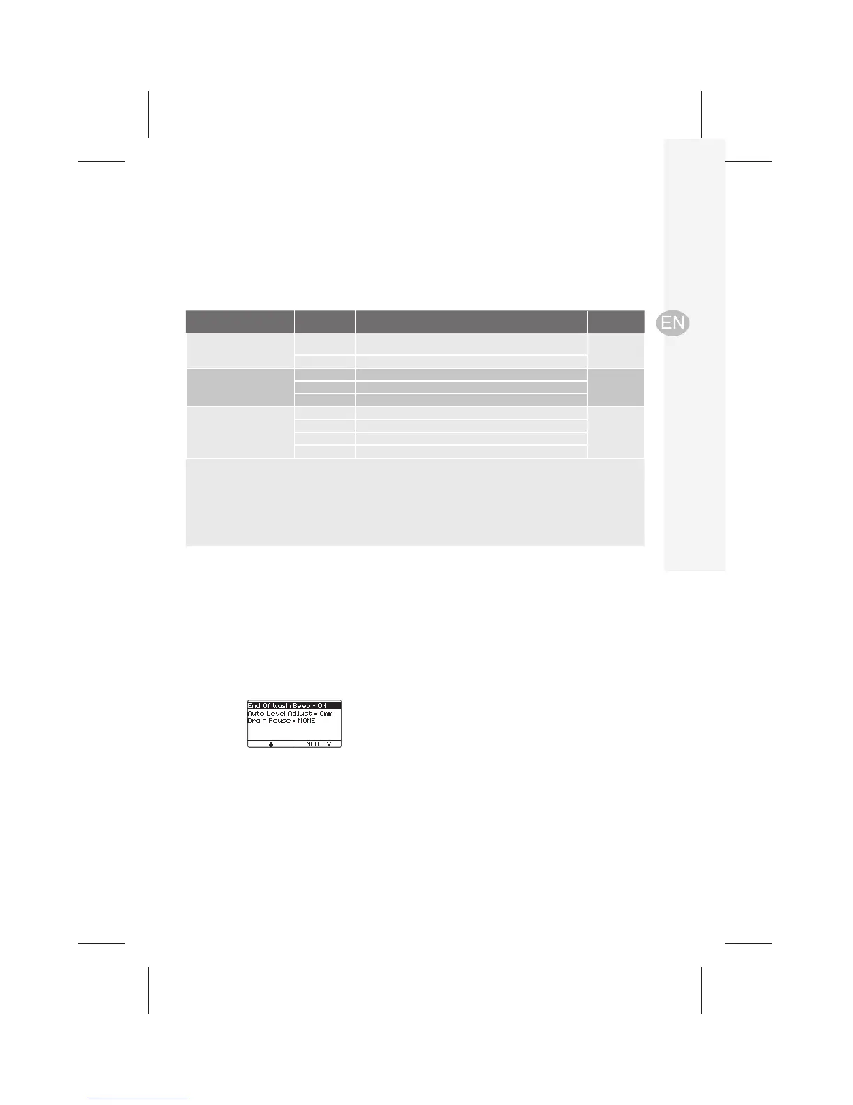NONE Normal wash process, no pausing at any drain stage NONE