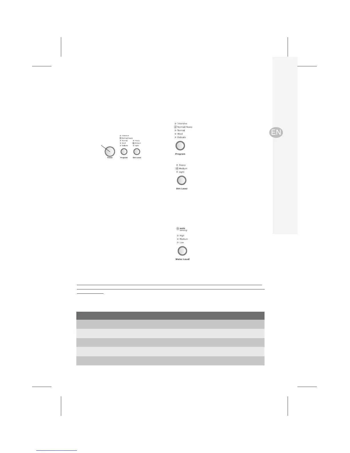 Medium Hot, Warm or Cold Select this program for an average domestic load of