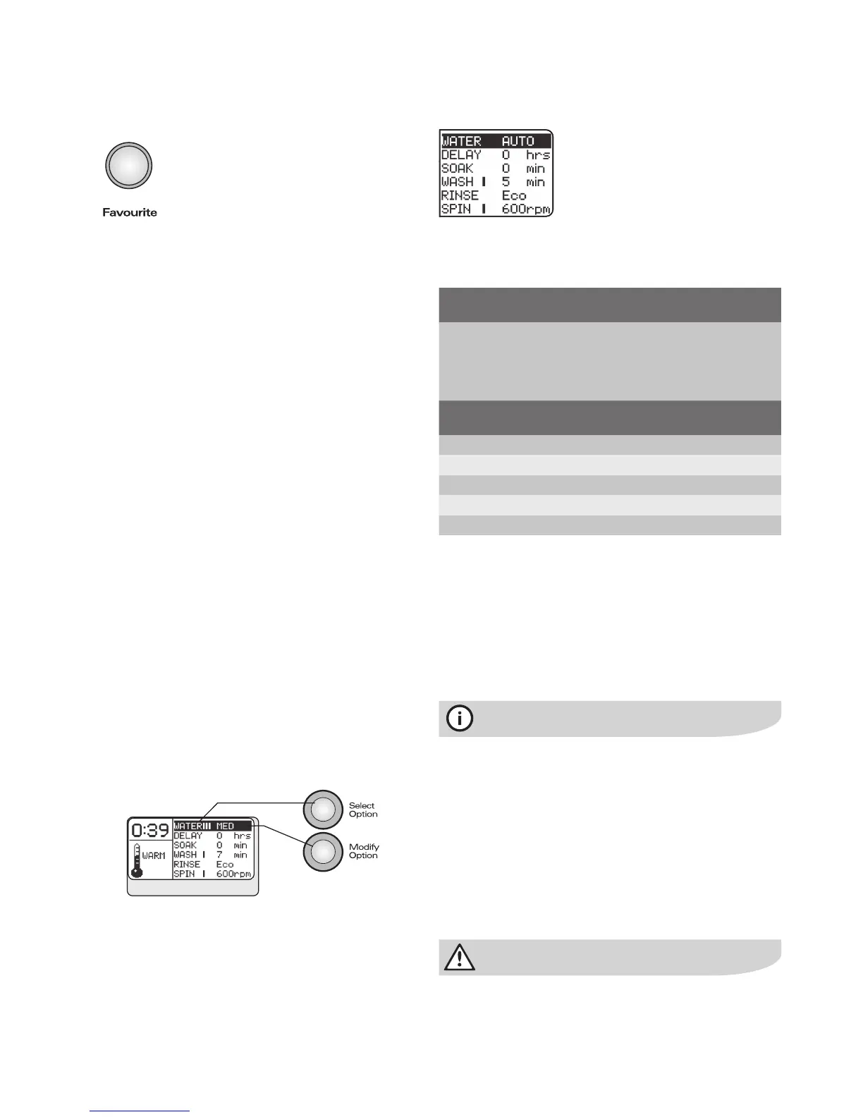 WATER LEVELS, DEPENDING ON LOAD SIZE