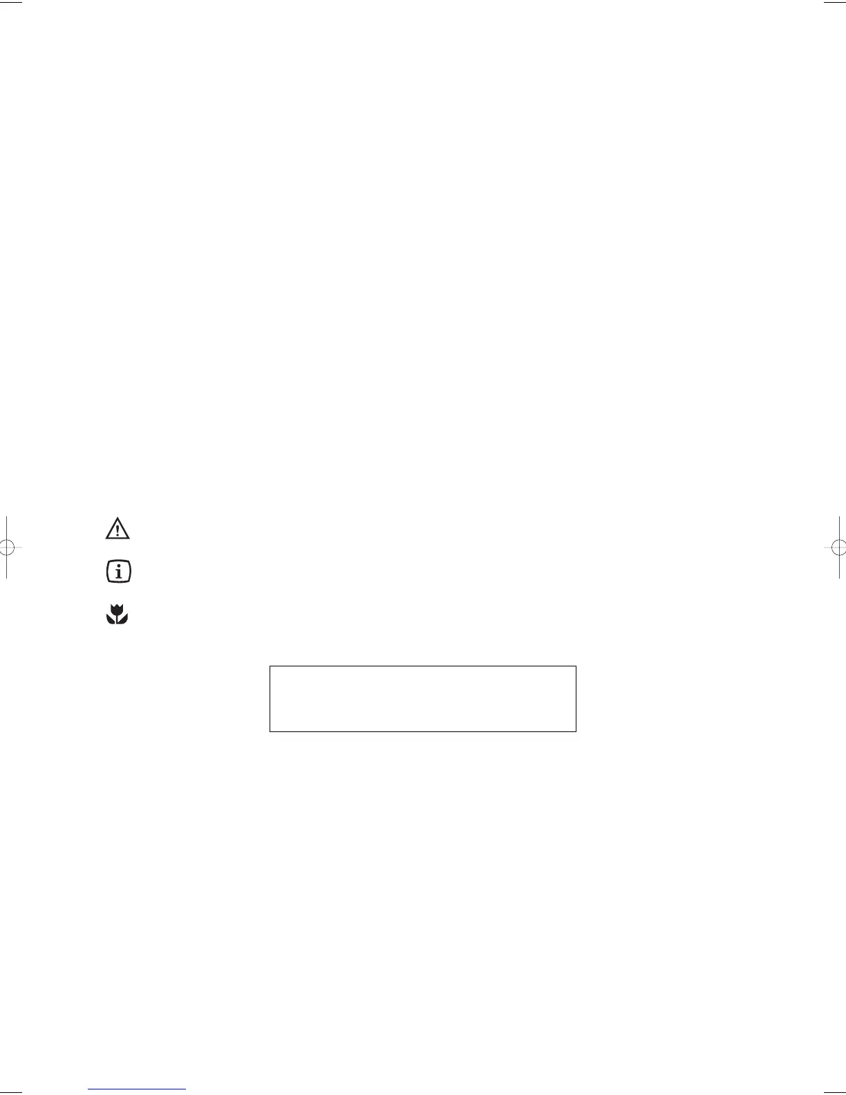 Tips and information about economical and ecological use of the machine are marked with this symbol.