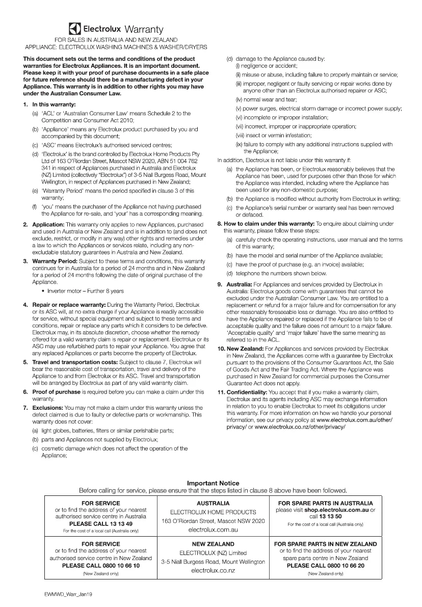 Electrolux EWW8024Q5WB - Warranty