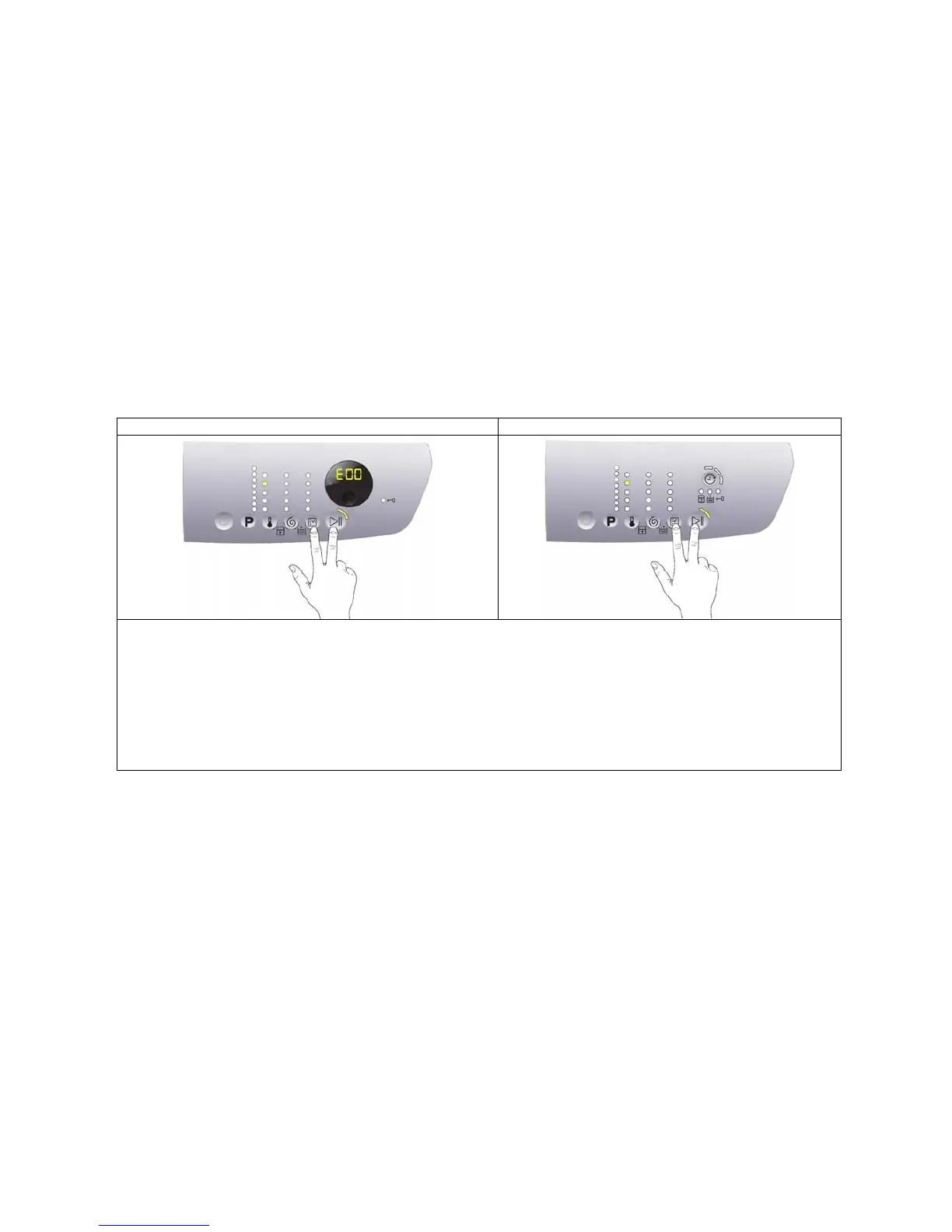 “E00”, while for styling P6 the START/PAUSE LED stops flashing.
