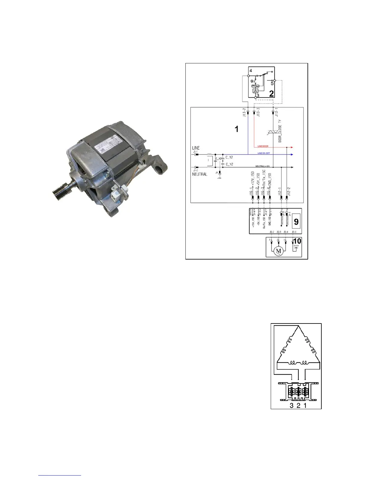 Three-phase power is fed by the inverter (10), which sends through the connectors J2-2 J2-3 J2-4 the three