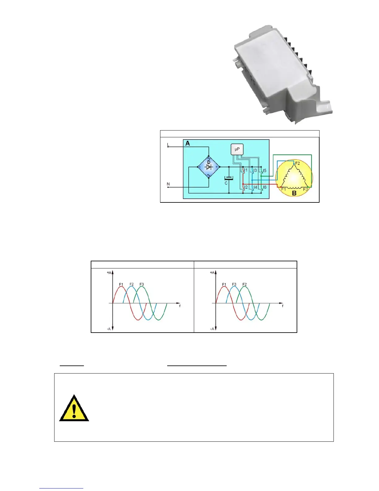 Single-phase electricity (applied to connectors L-N), is rectified by the diode jumper (D), so there is a direct