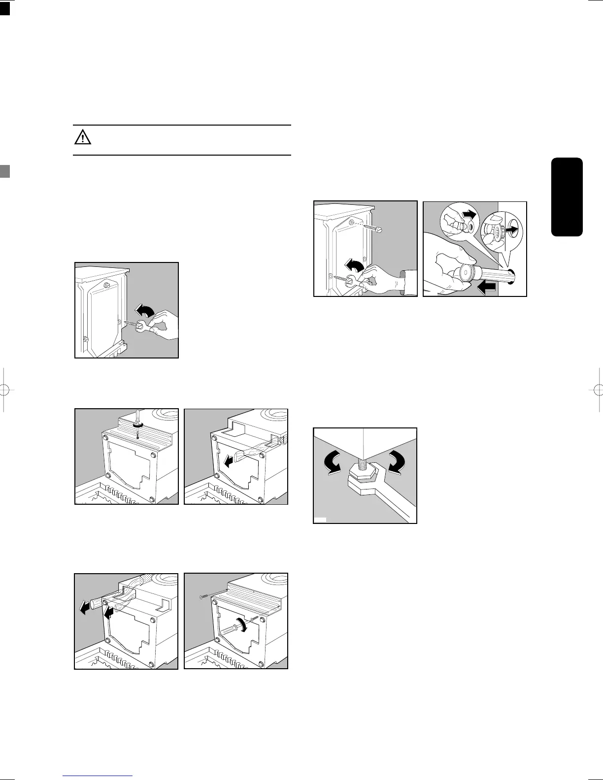 Carefully level by screwing the adjustable feet in or