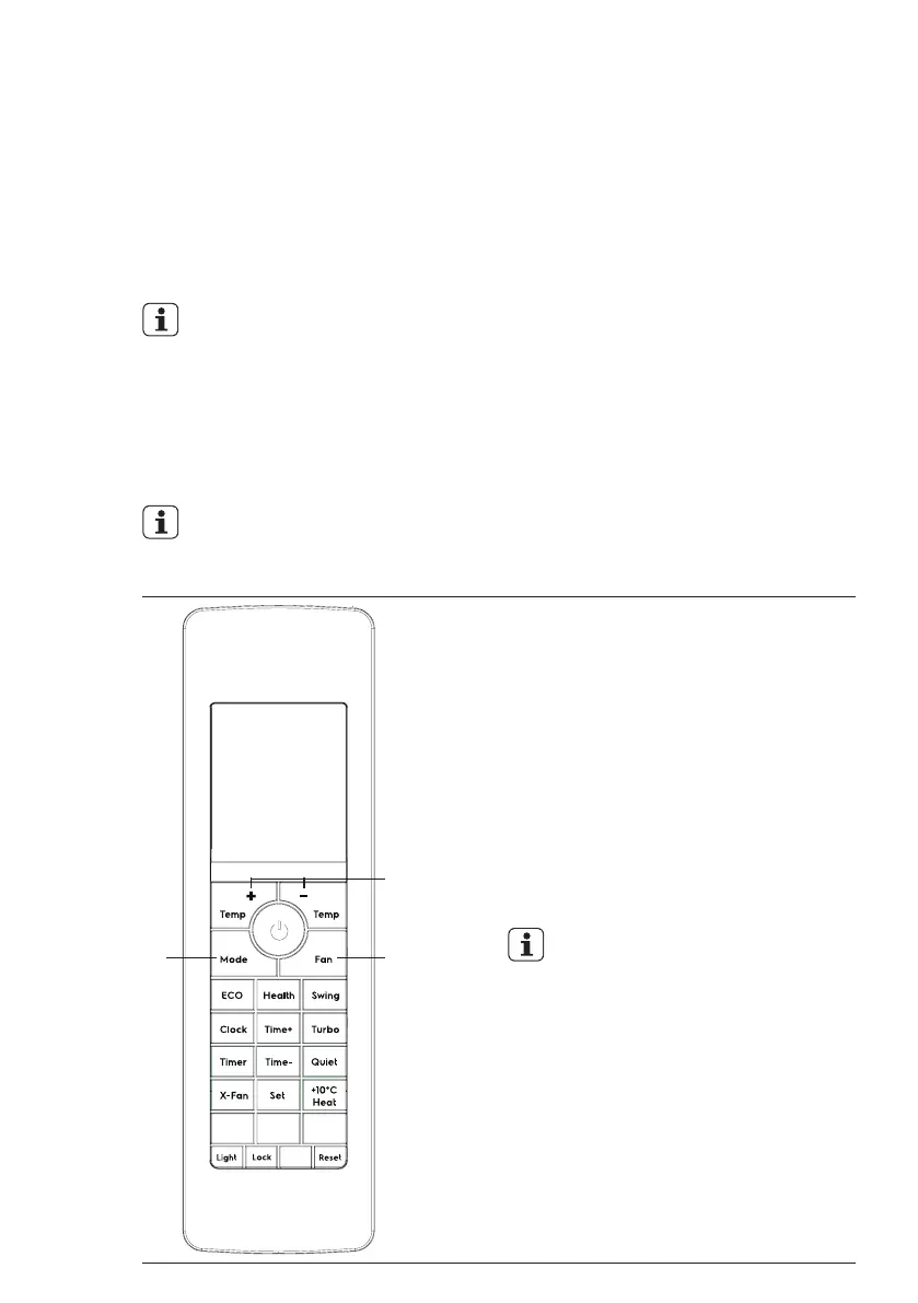 • I fläktläge är temperaturinställning