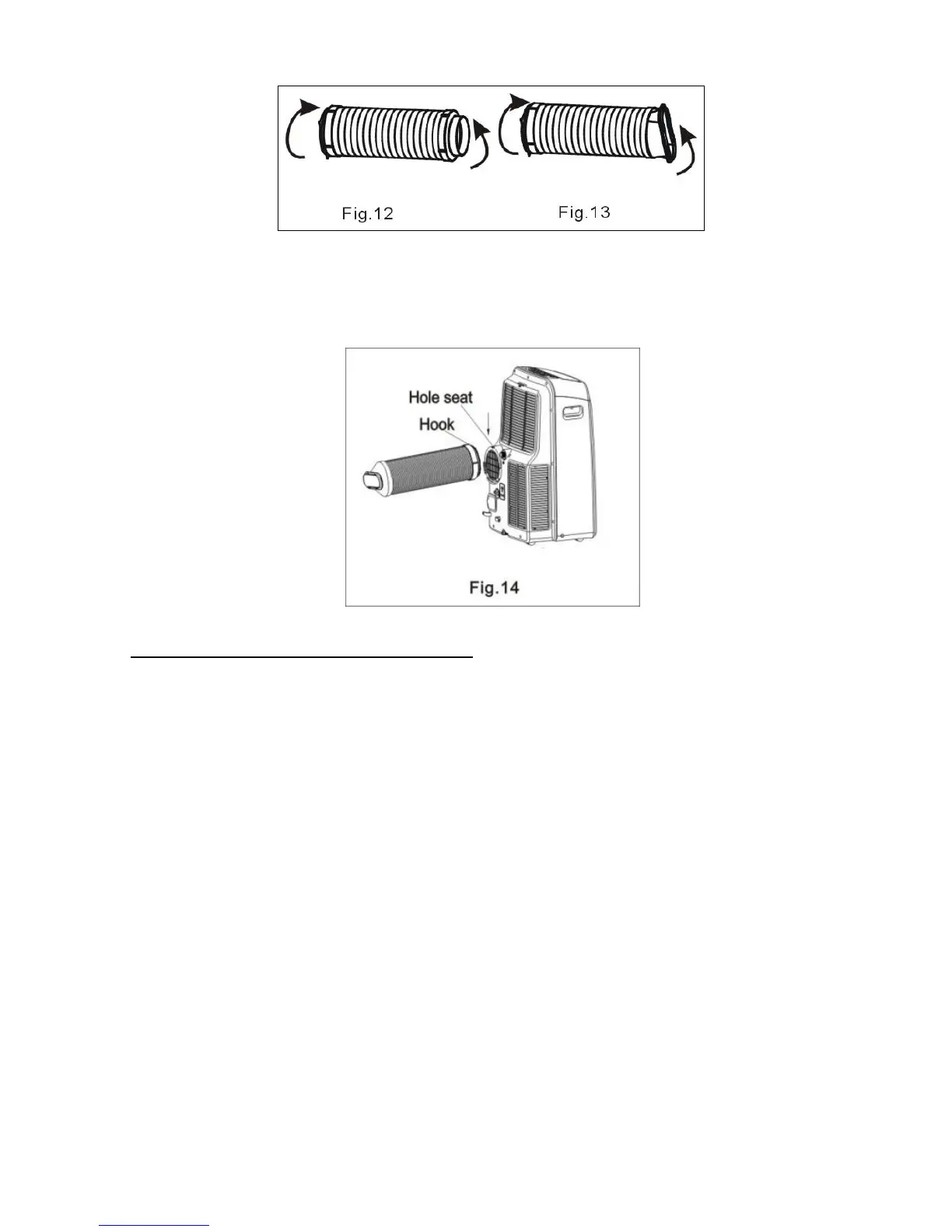 2. Insert the hook of the Exhaust hose into the hole seat of the air outlet and slide down the Exhaust