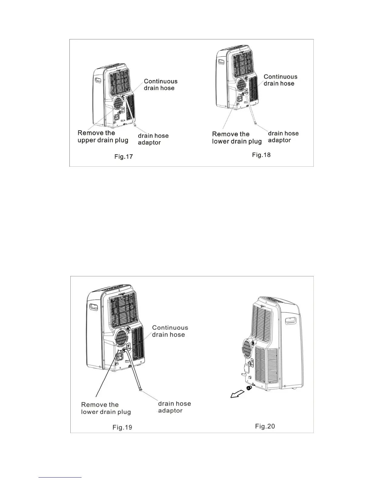 -During heating pump mode, remove the lower drain plug from the back of the unit, install the drain
