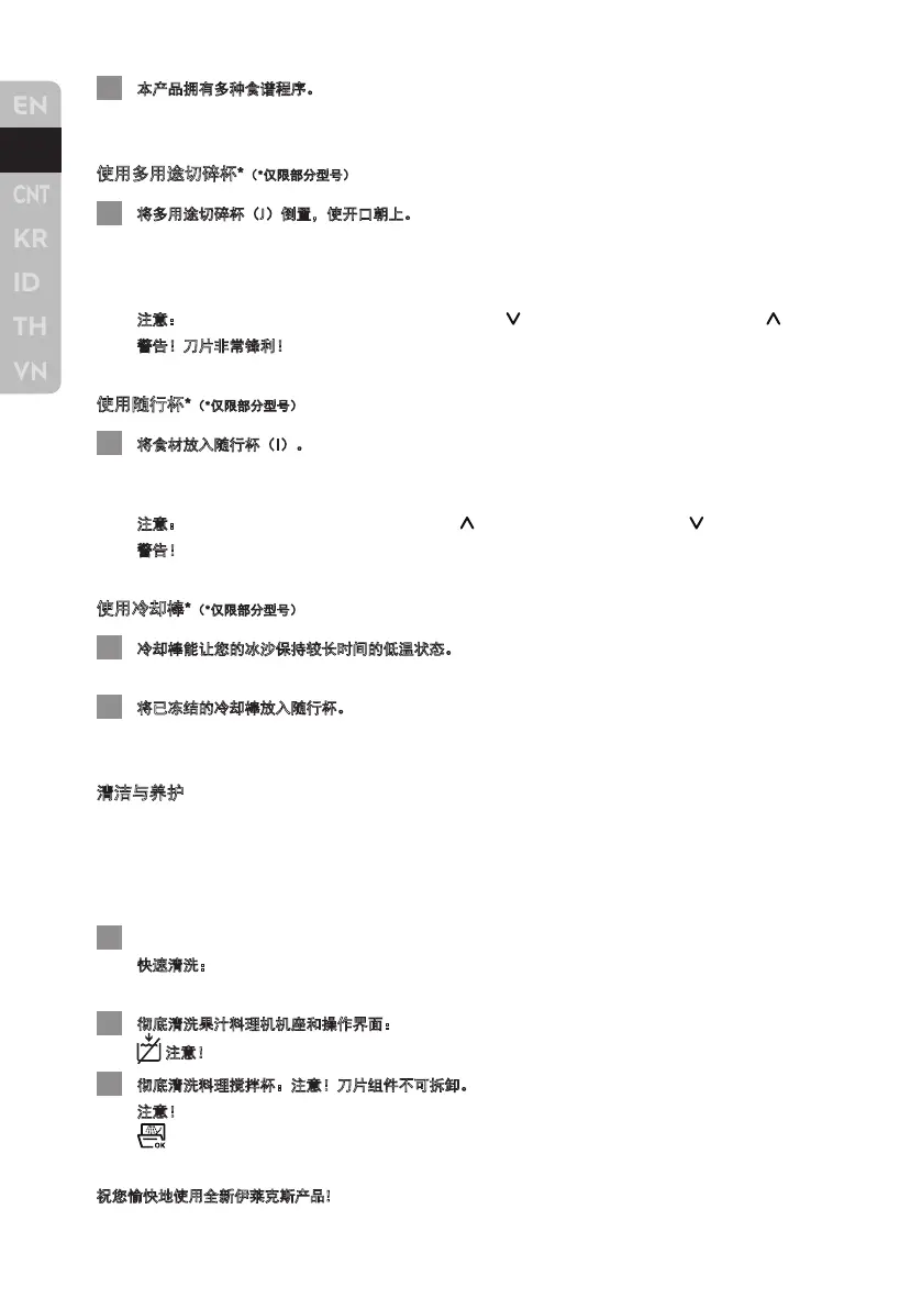 15 把料理搅拌杯放入洗碗机前要用清水完全冲洗。