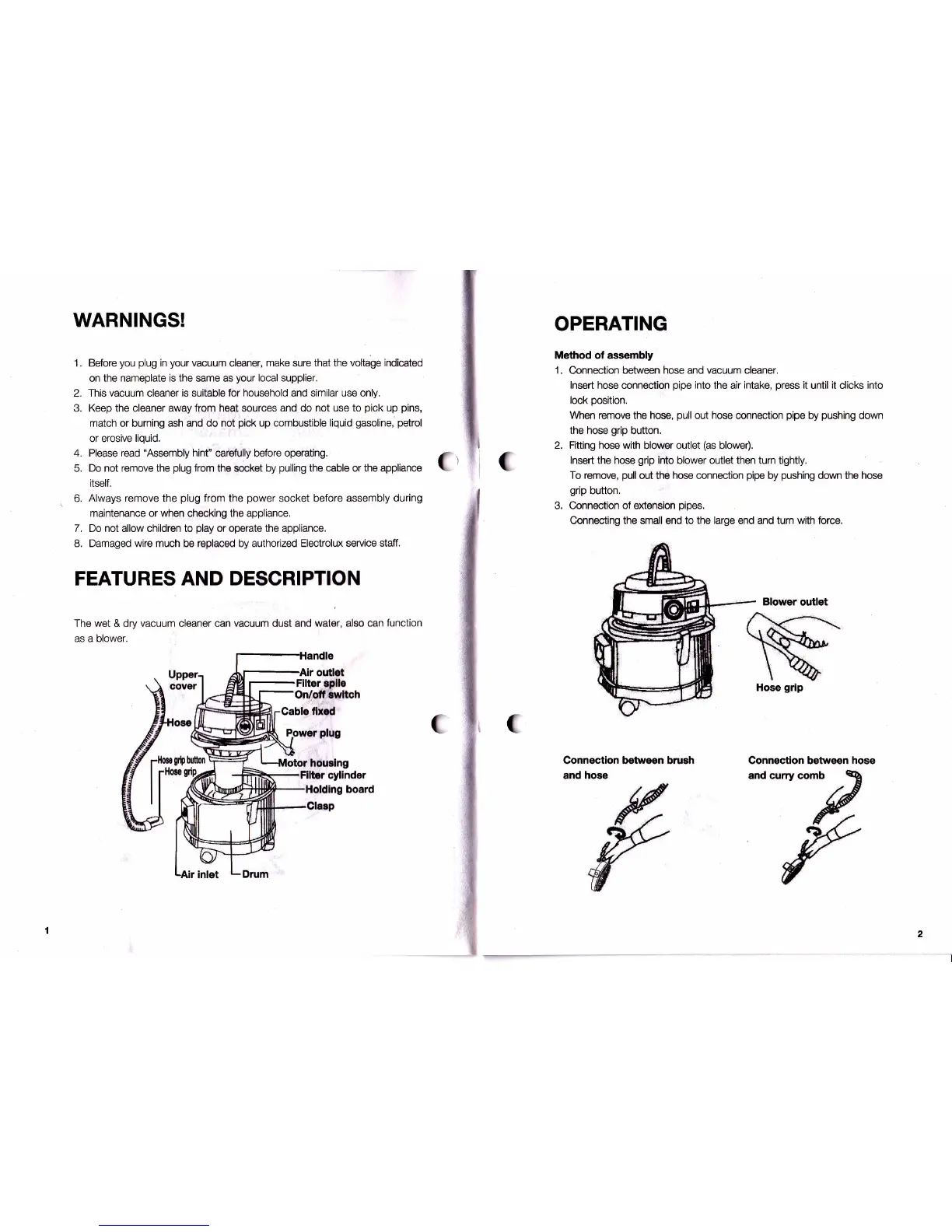 Electrolux Flexio Z803 - WARNINGS!; General Safety Precautions; FEATURES AND DESCRIPTION; Product Components Identification