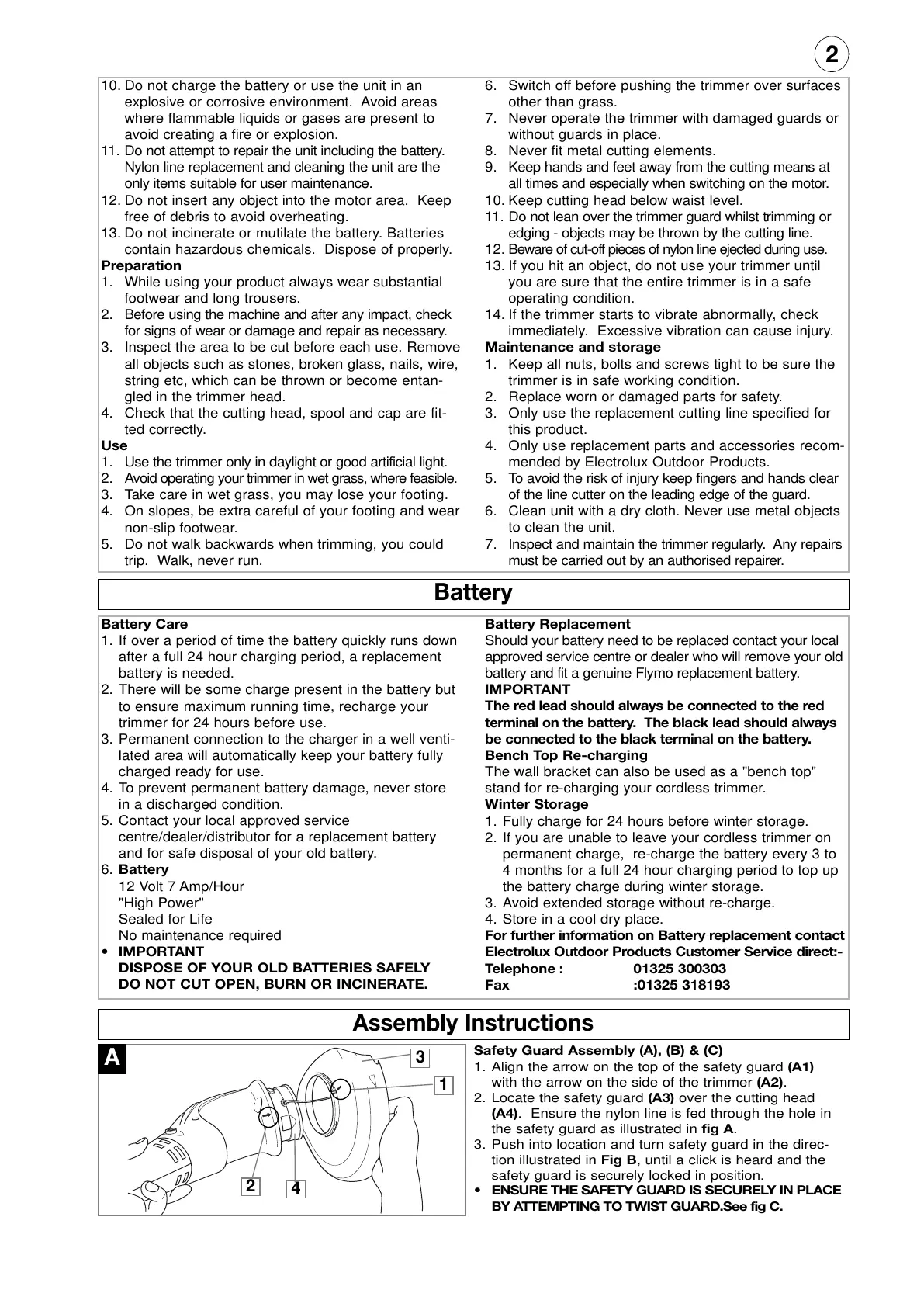 Electrolux Outdoor Products Customer Service direct:-