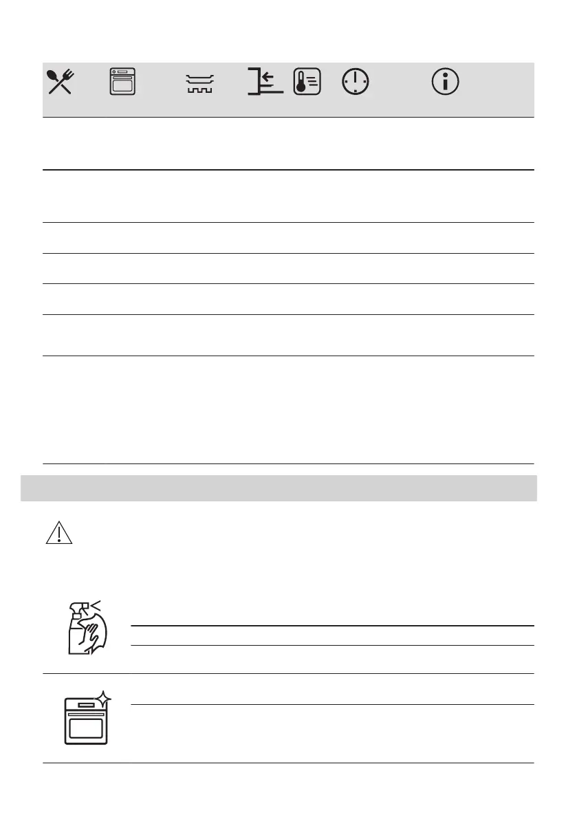 Fan Cooking Wire shelf 2 and 4 160 40 - 60 Preheat the oven for