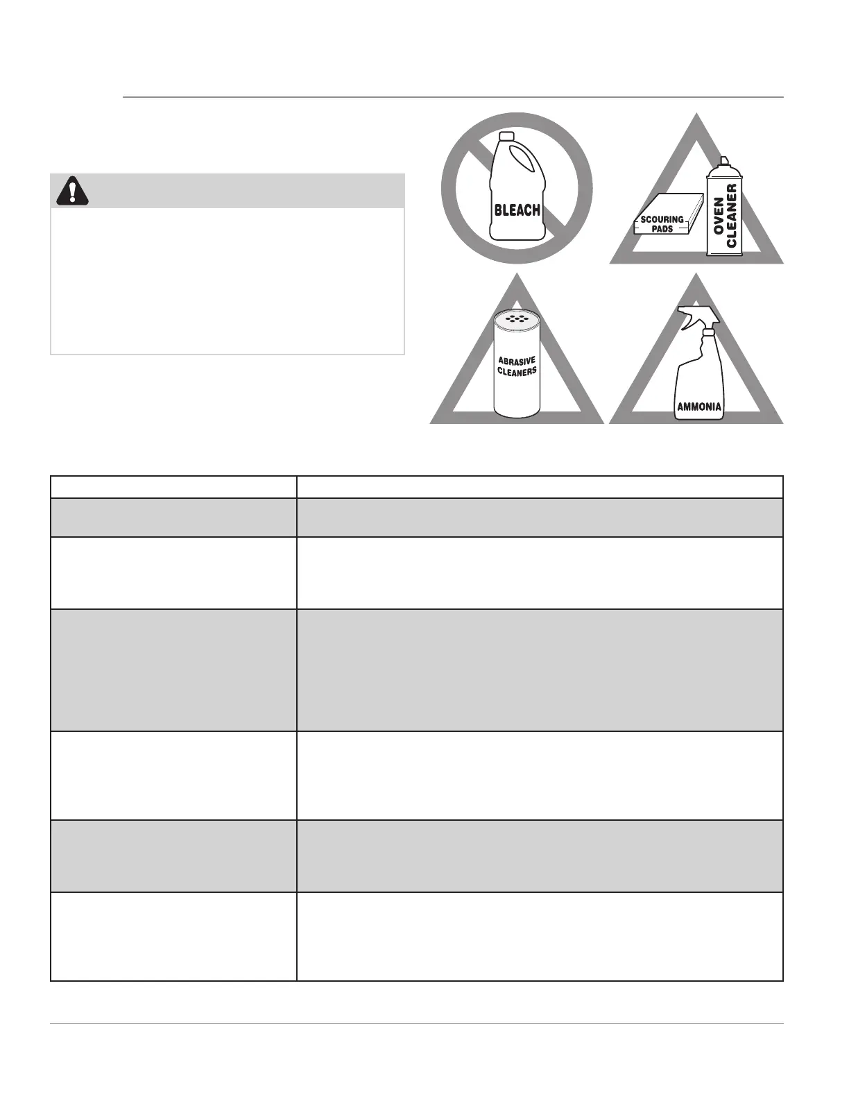 er, or cleaner containing abrasives, chlorides, chlorine, or ammonia.