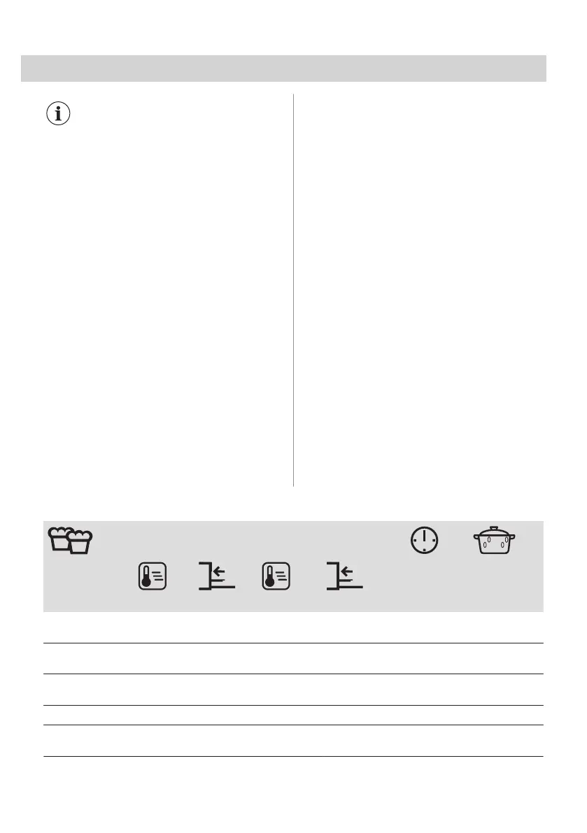 di cottura e posizione ripiano.
