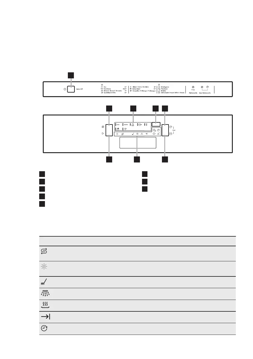 Rinse aid indicator. It is on when the rinse aid dispenser needs refill‐