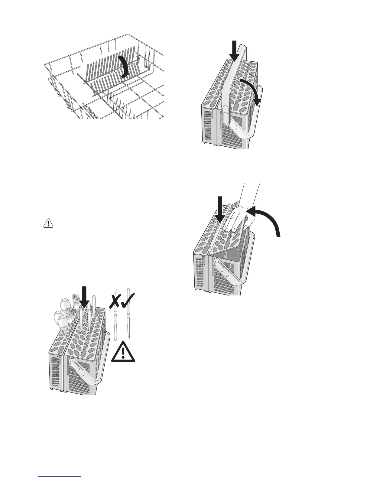 Lower the handle of the cutlery basket to put