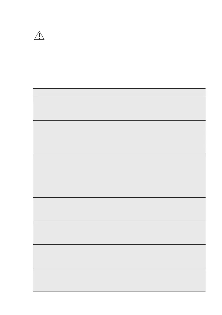 Problem and alarm code Possible cause and solution