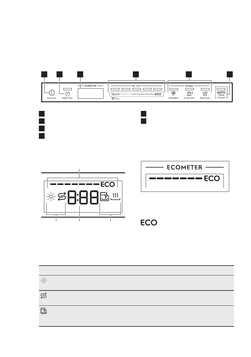 Rinse aid indicator. It is on when the rinse aid dispenser needs refill‐