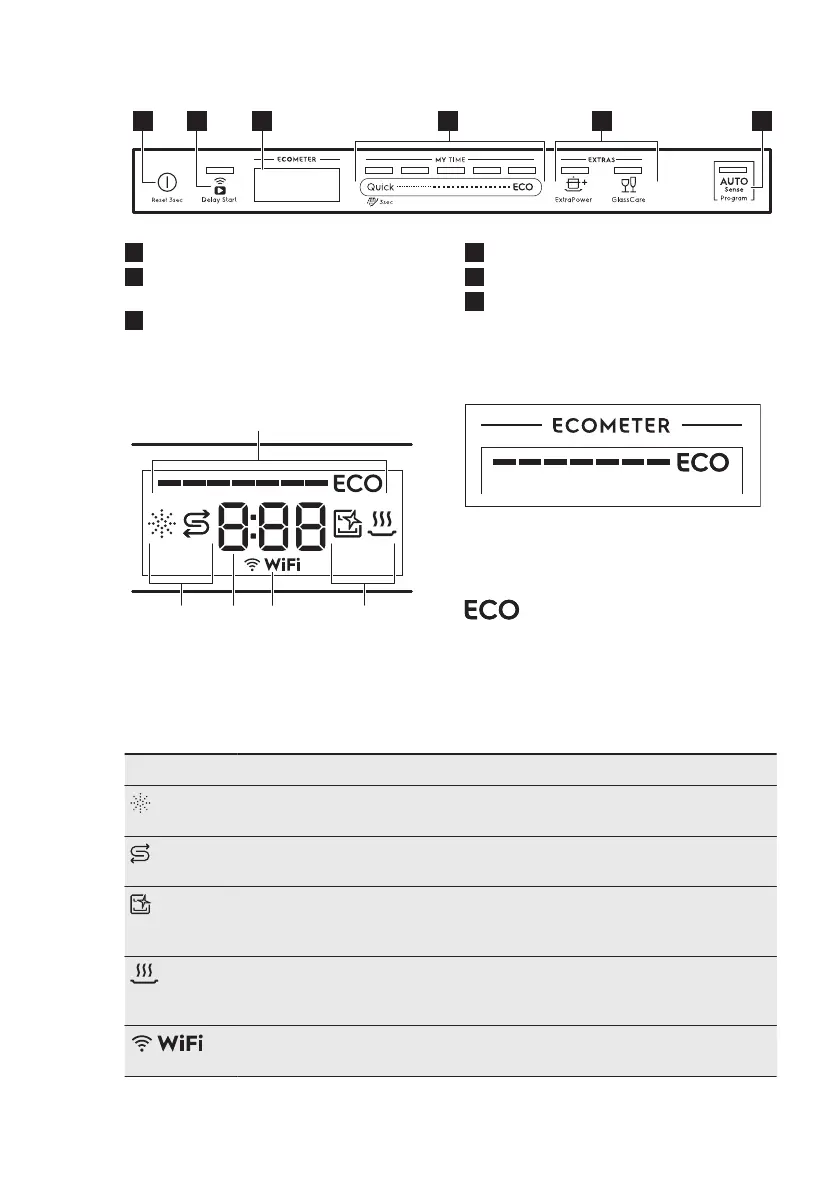 Rinse aid indicator. It is on when the rinse aid dispenser needs refill‐