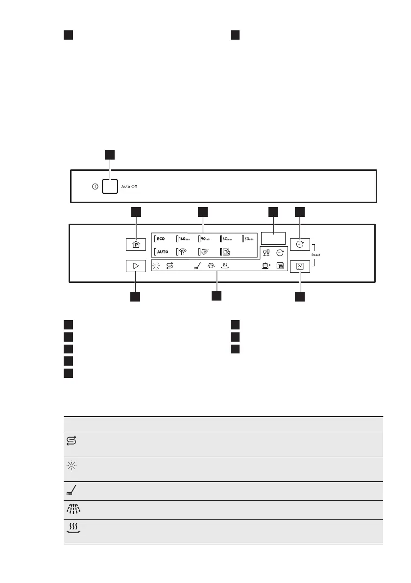 Rinse aid indicator. It is on when the rinse aid dispenser needs refill‐