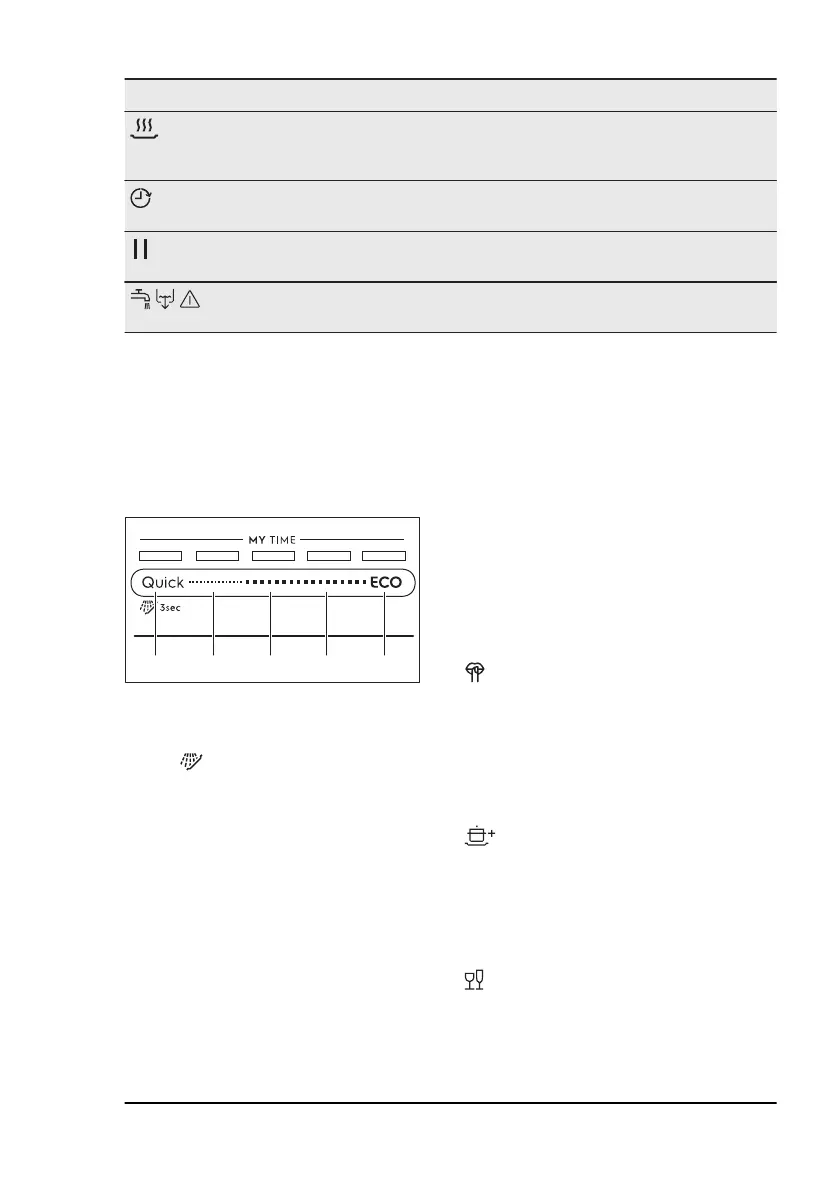 Drying phase indicator. It is on when you select a programme with the