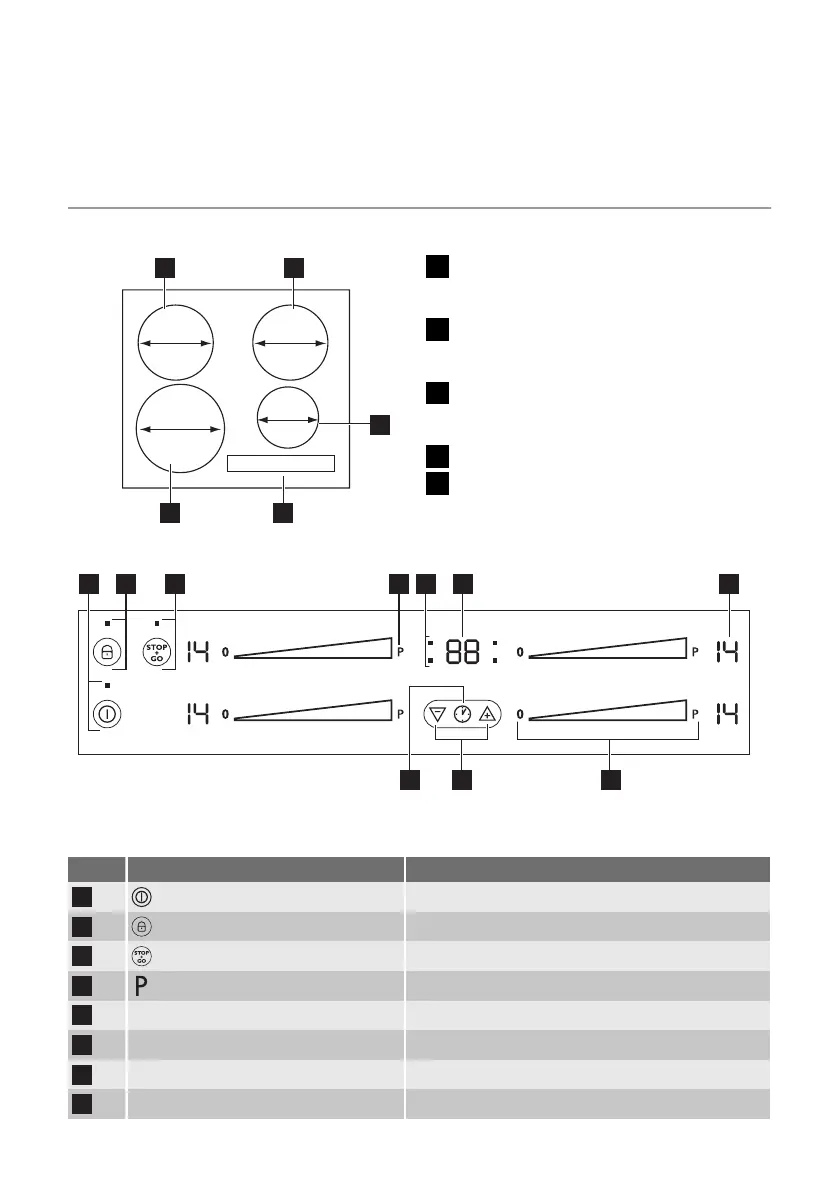 cooking zones' indicators of timer It shows for which cooking zone you set the time.