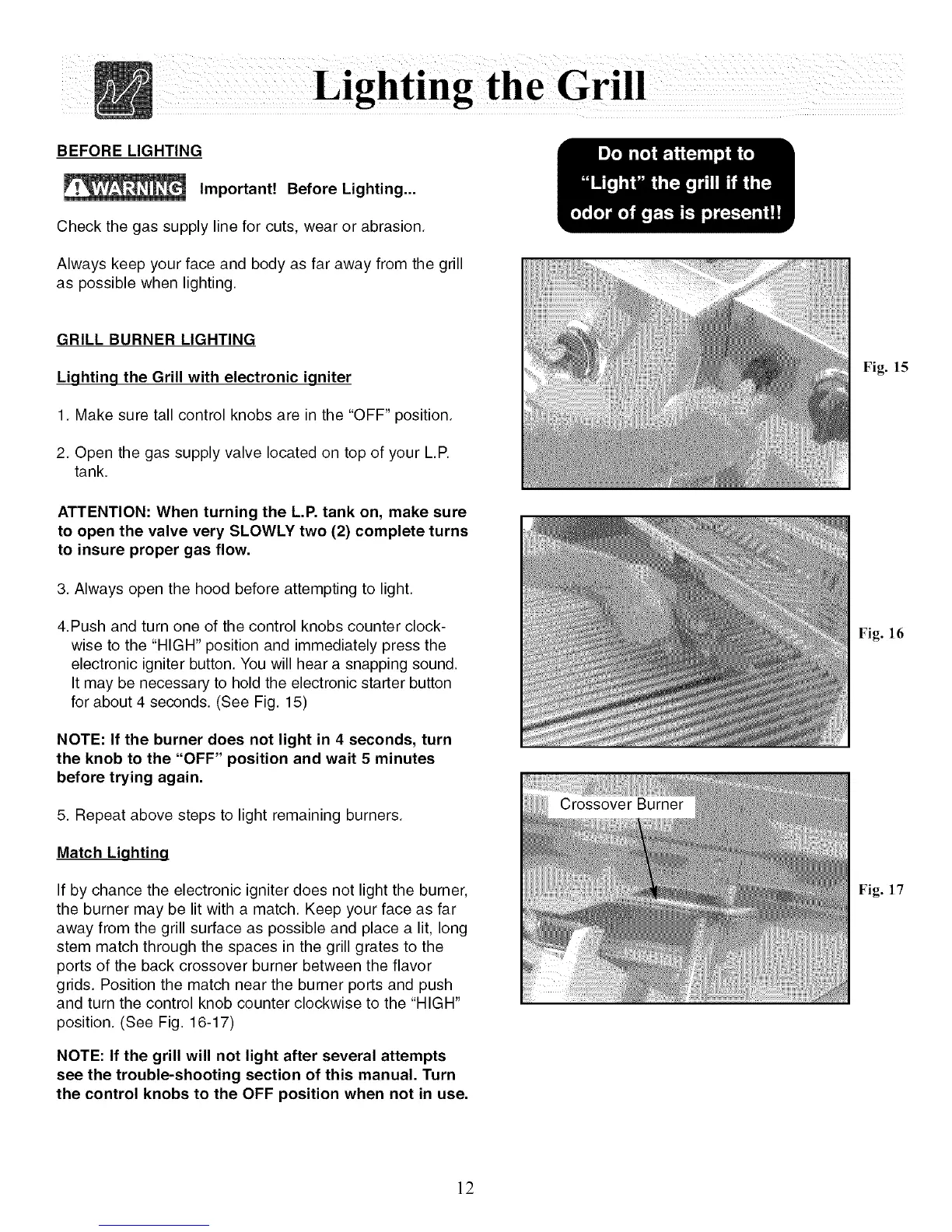 NOTE: If the grill will not light after several attempts