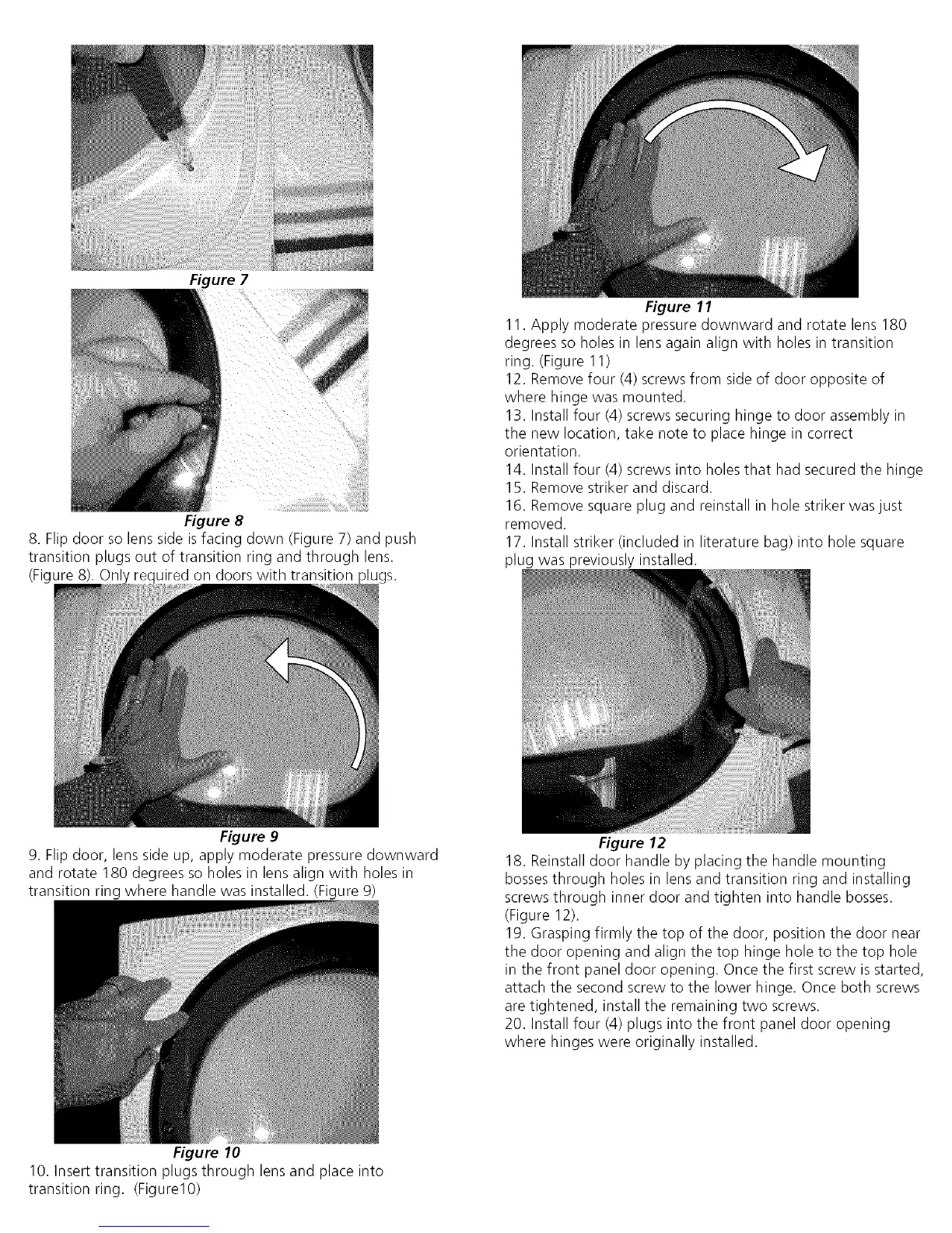 9. Flip door, lens side up, apply moderate pressure downward