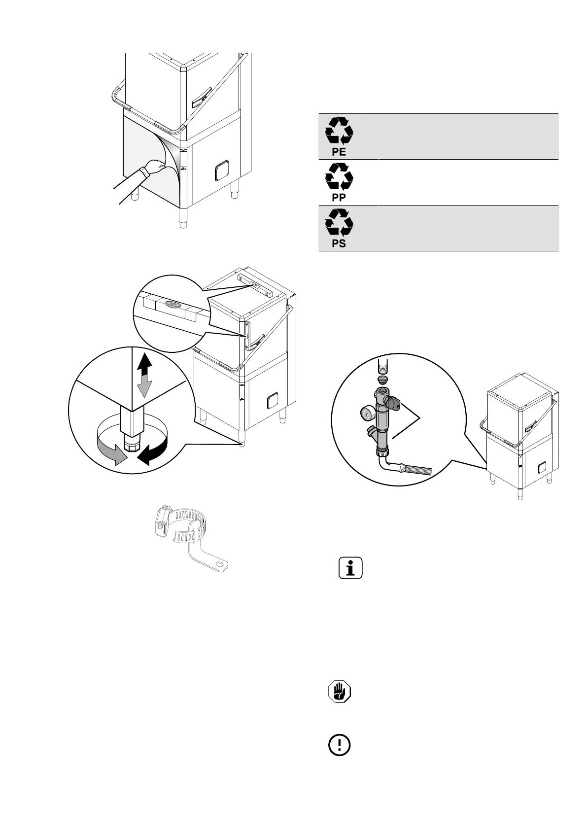 • Adjust the equipment by turning the special adjustable feet