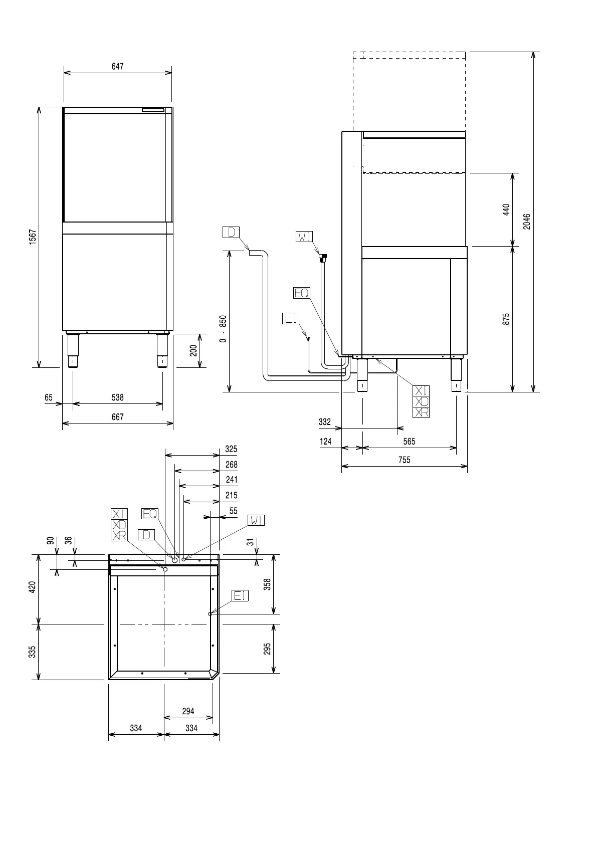 Installation diagram Automatic hood type with drain pump and without
