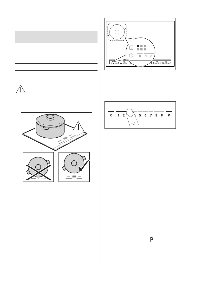 induktiokeittotason keittoalueita. Alueiden