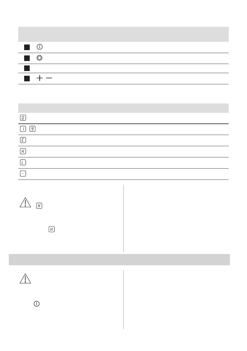 ON / OFF To activate and deactivate the hob.