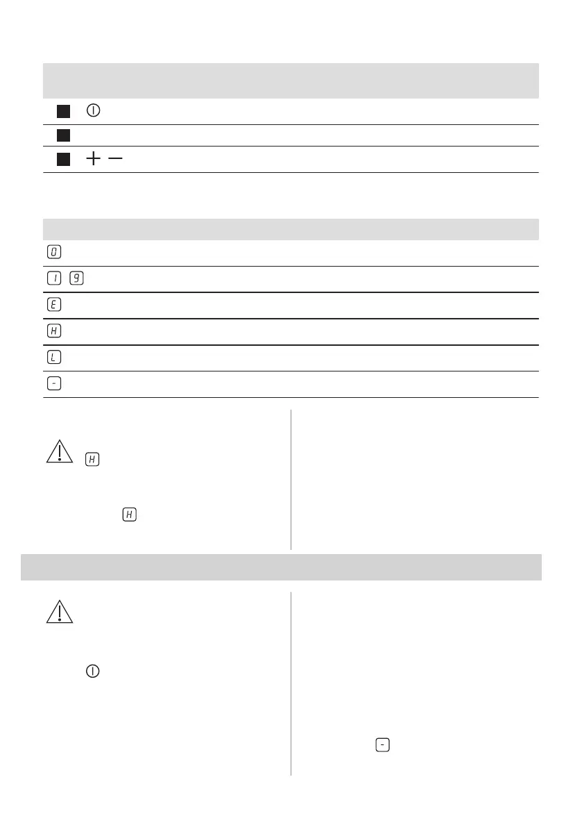 ON / OFF Tænder / slukker for kogesektionen.