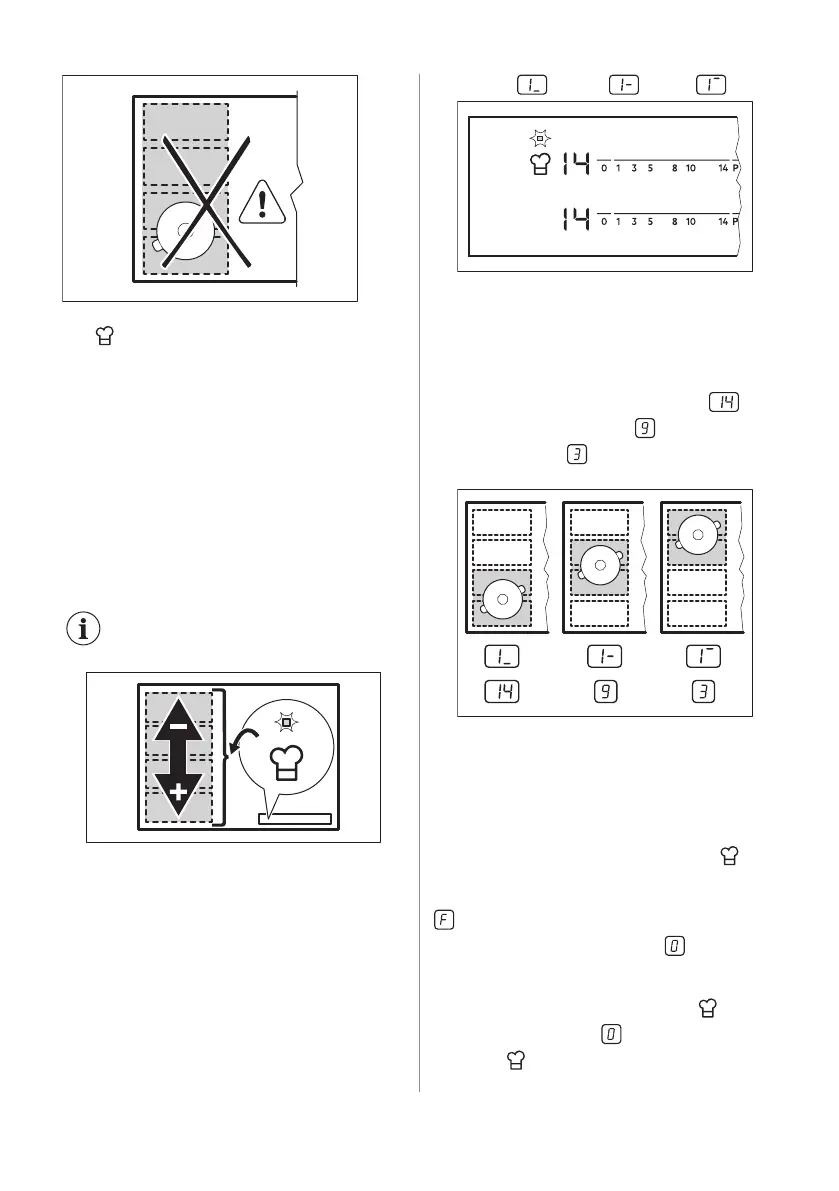 riktig posisjon på kokeområdet. Berør .