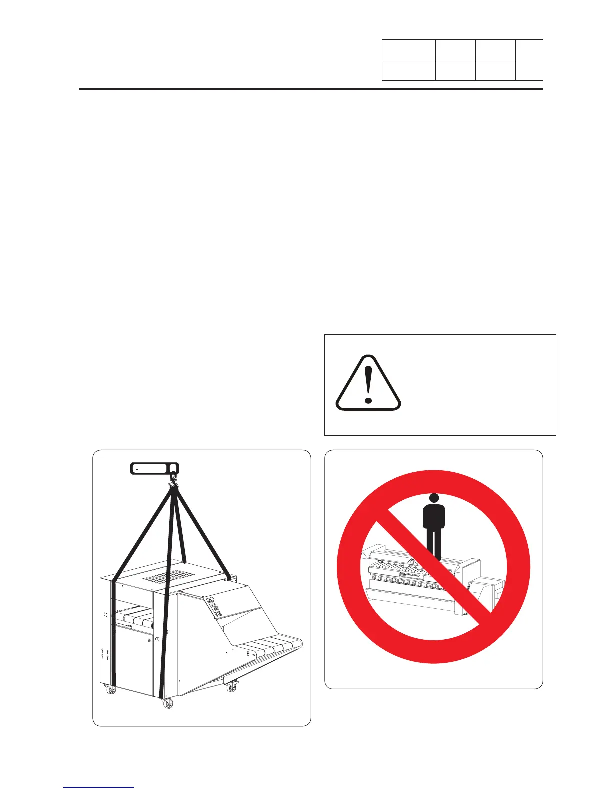 The two handling angles (B) can be used to lift the machine using hydraulic jacks or poles, so