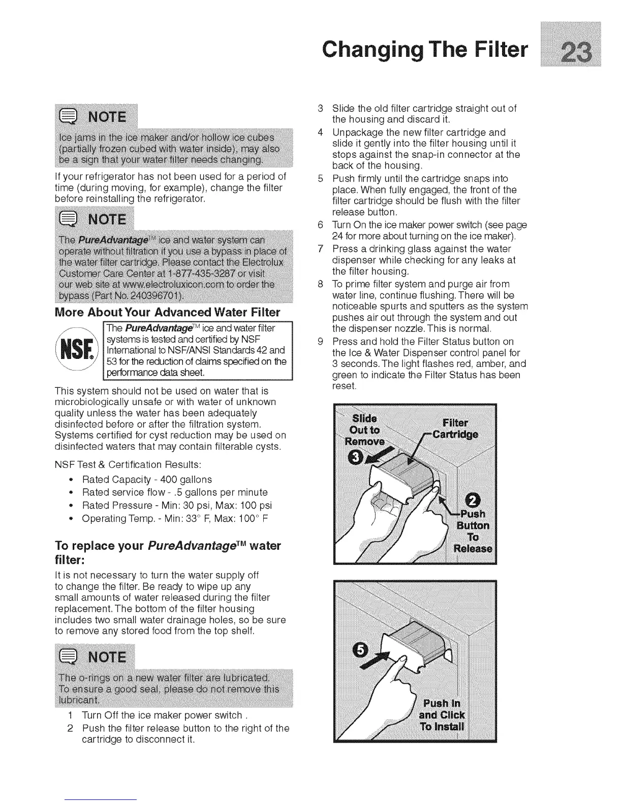 The PureAdvantage TM ice and water filter