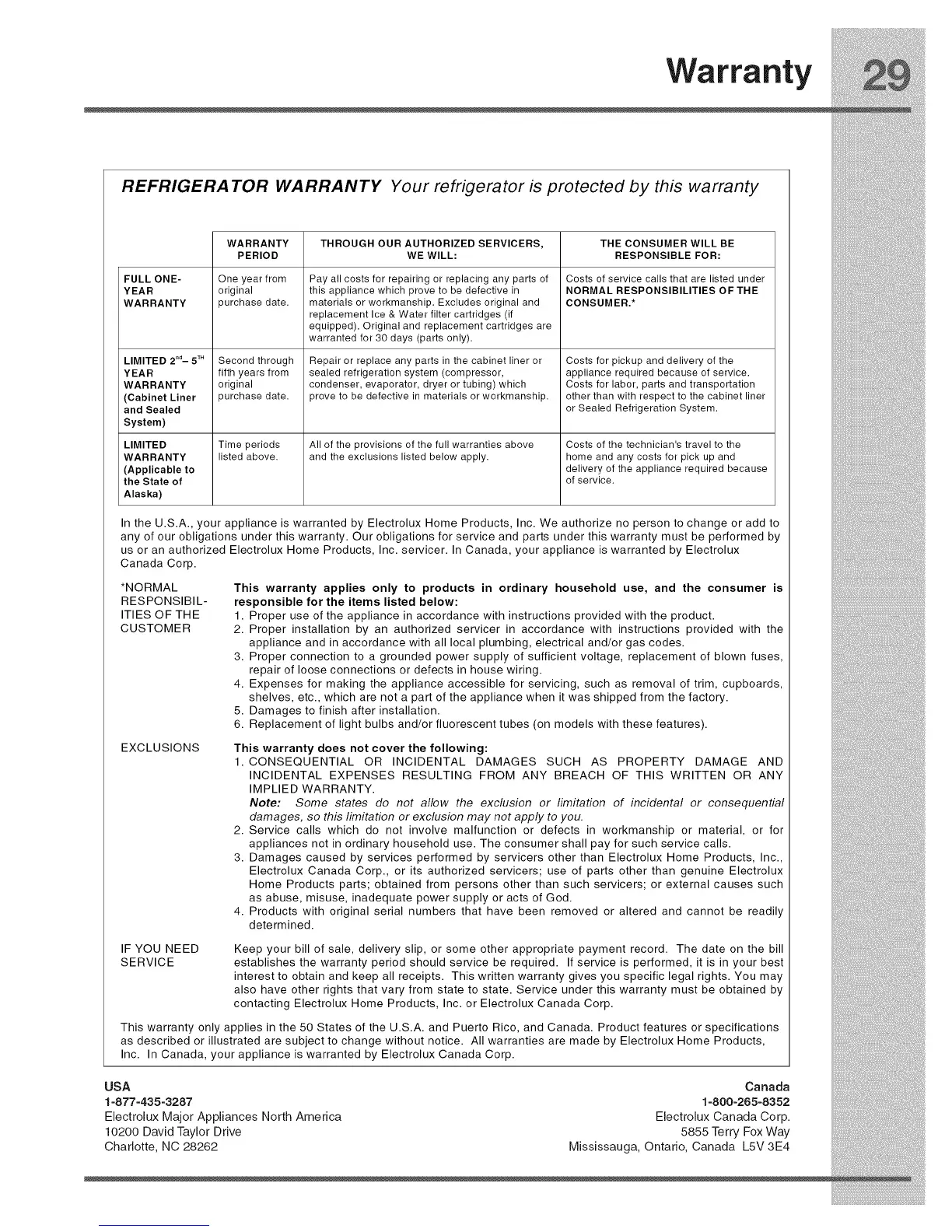 us or an authorized Electrolux Home Products, Inc. servicer. In Canada, your appliance is warranted by Electrolux