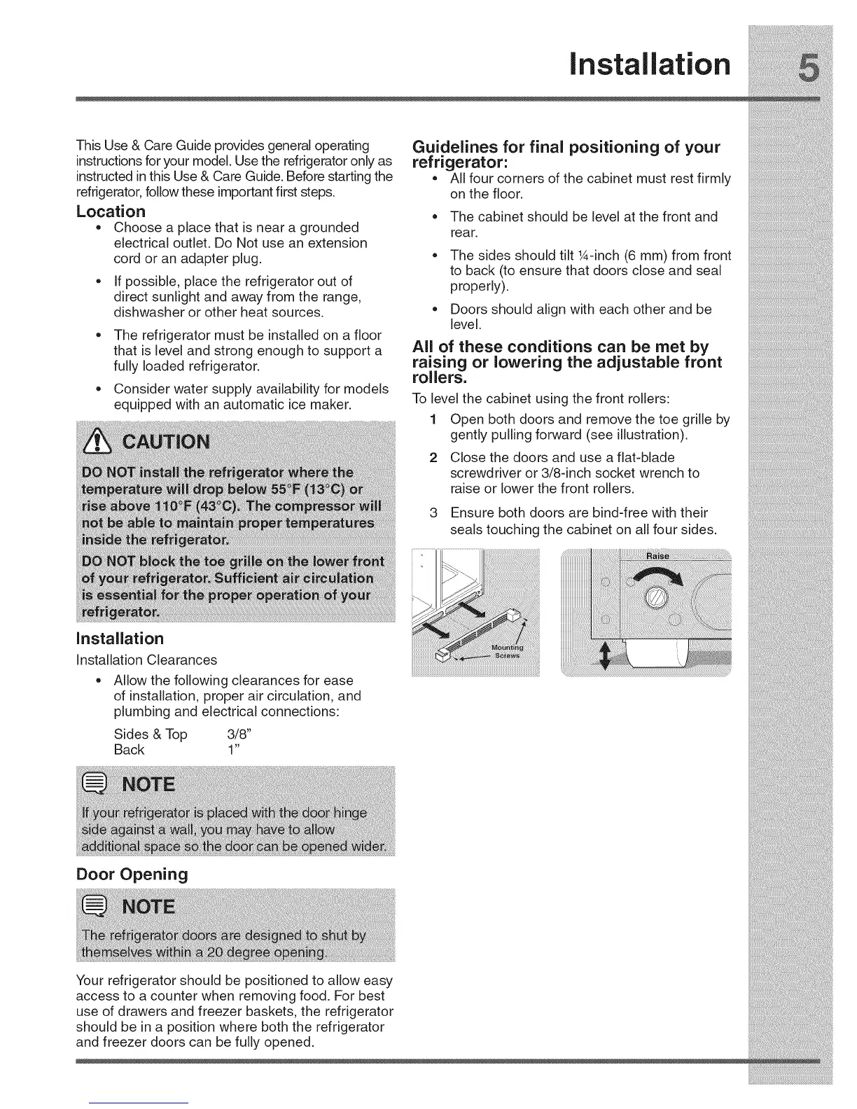 and freezer doors can be fully opened.