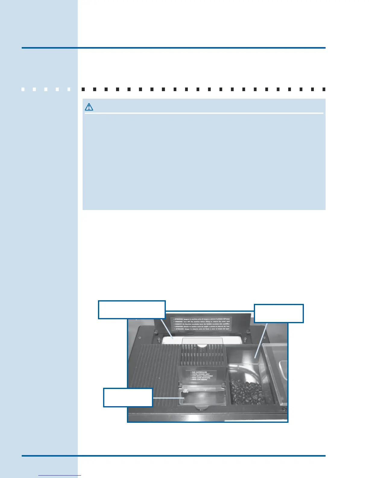 the ground coffee chute. See the Decaffeinated and Ground Coffee