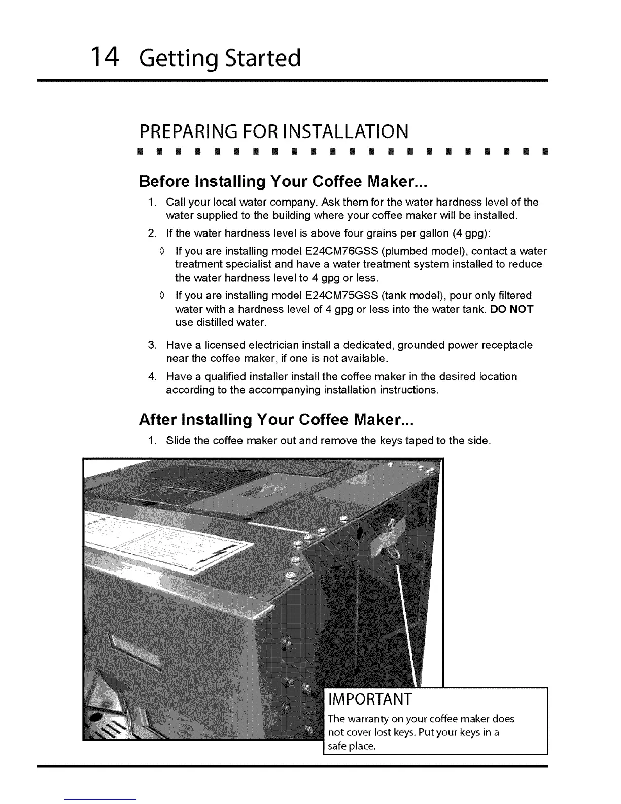 If you are installing model E24CM75GSS (tank model), pour only filtered