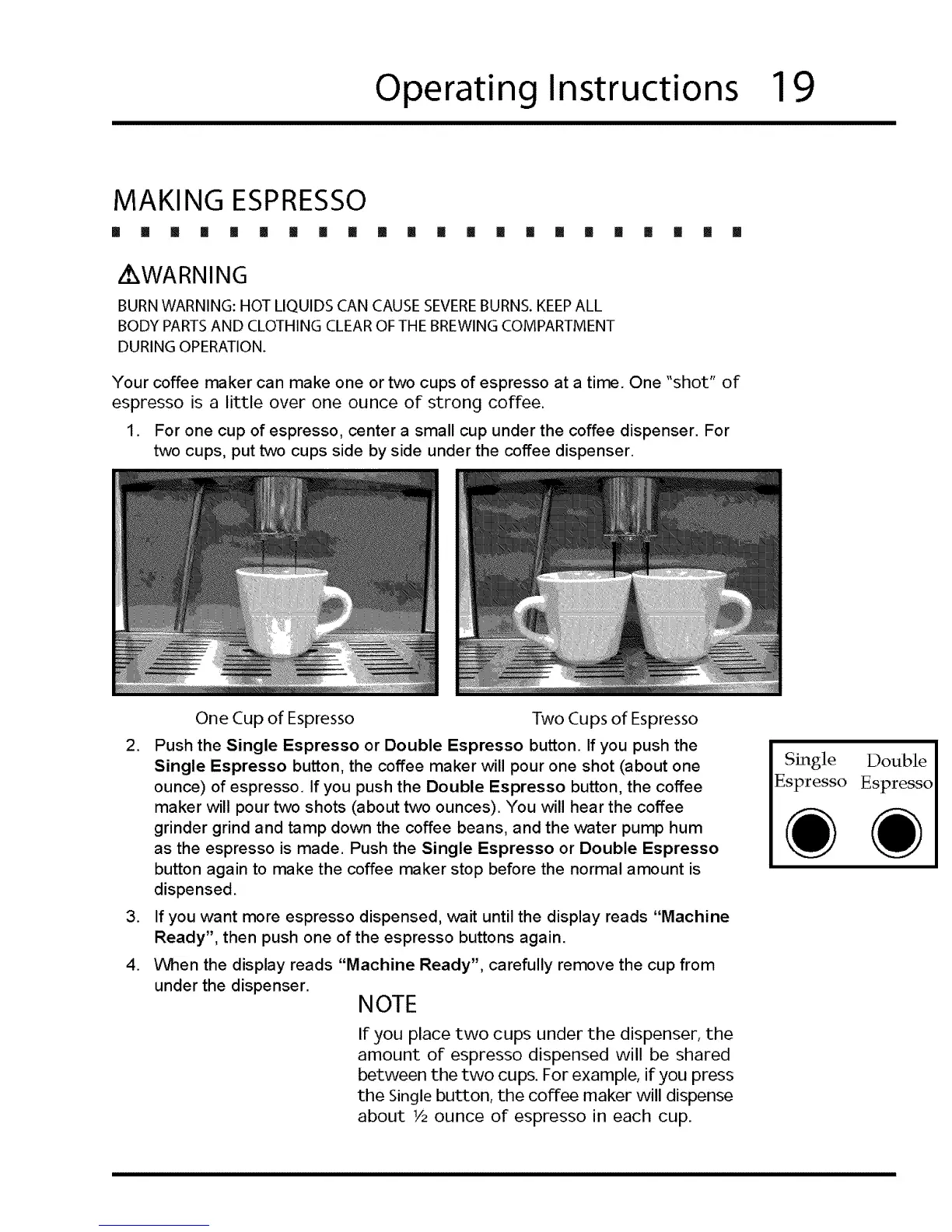 maker will pour two shots (about two ounces). You will hear the coffee