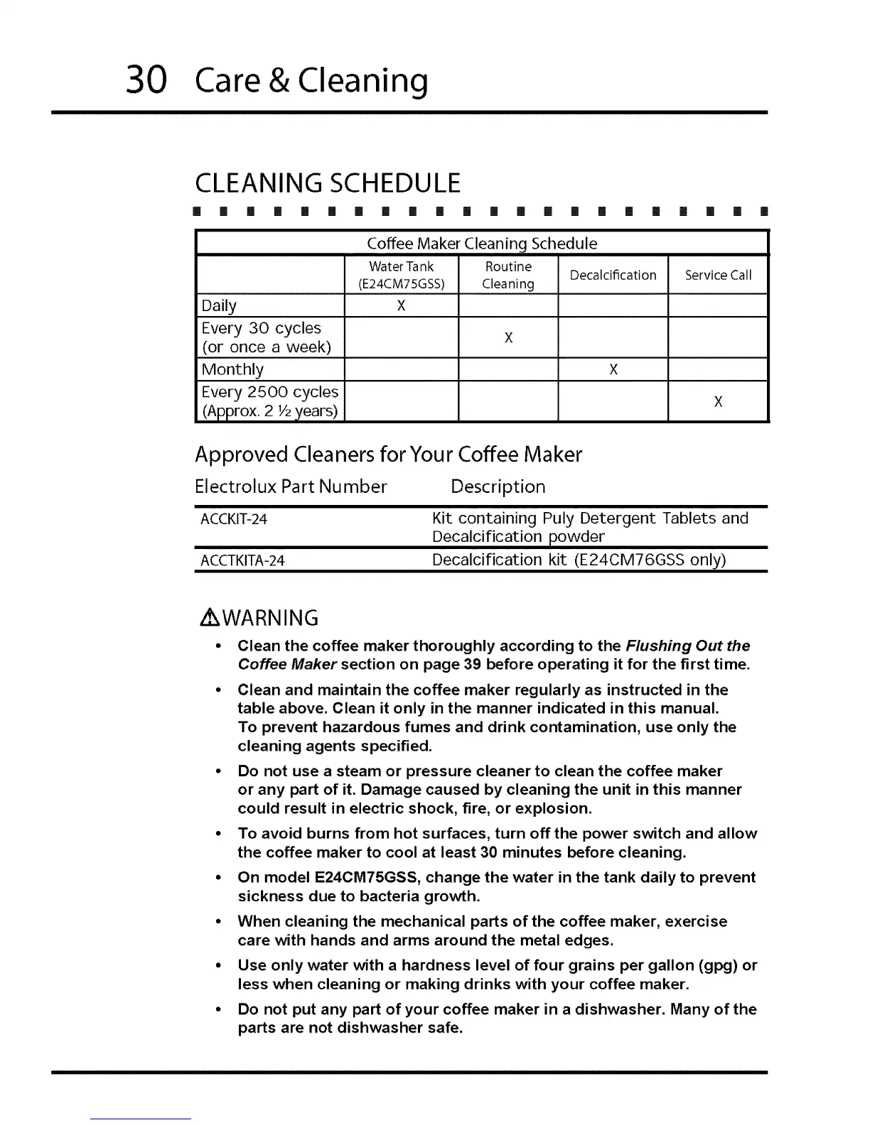 the coffee maker to cool at least 30 minutes before cleaning.