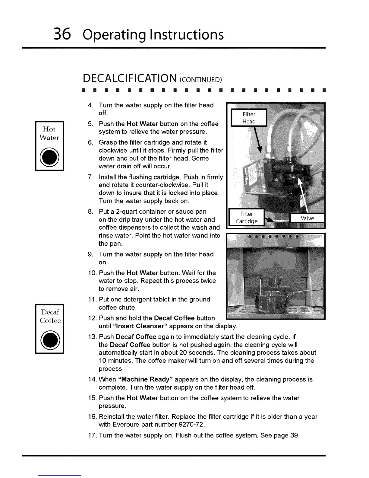 the Decaf Coffee button is not pushed again, the cleaning cycle will