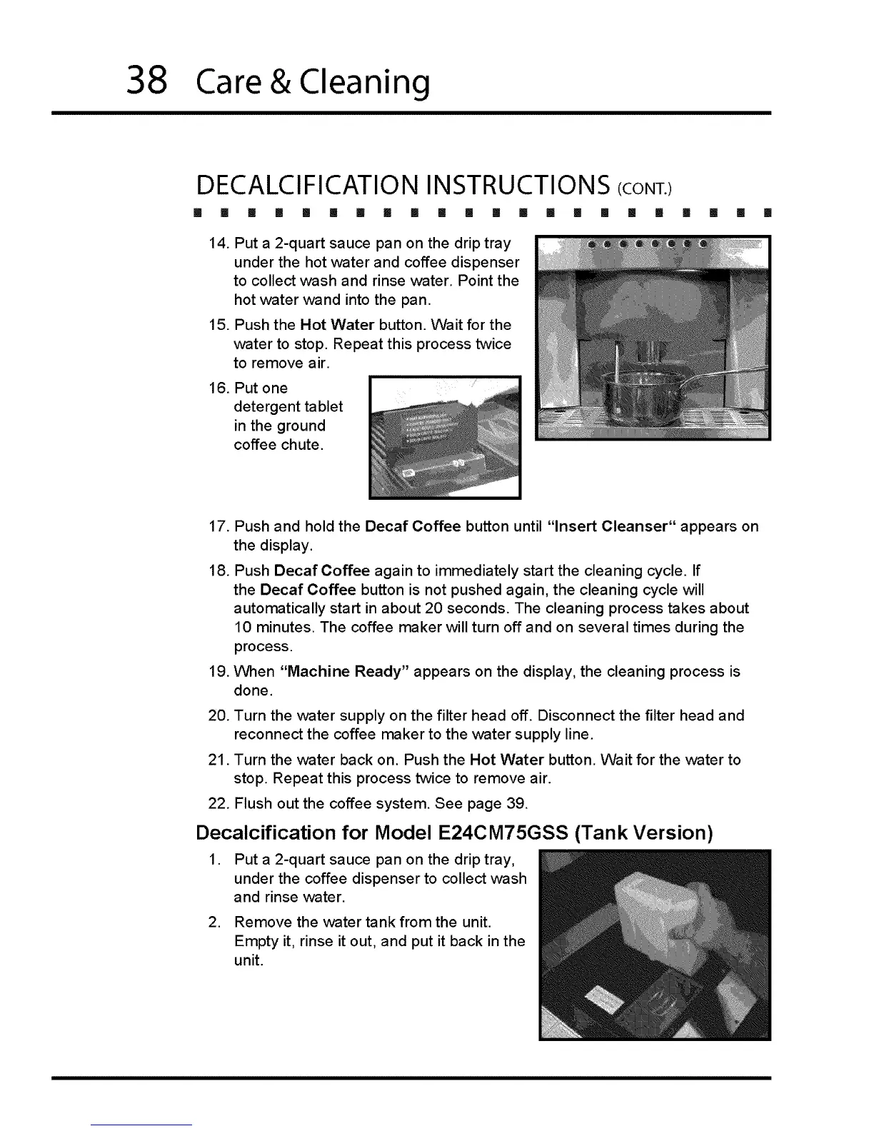 Push and hold the Decaf Coffee button until "Insert Cleanser" appears on