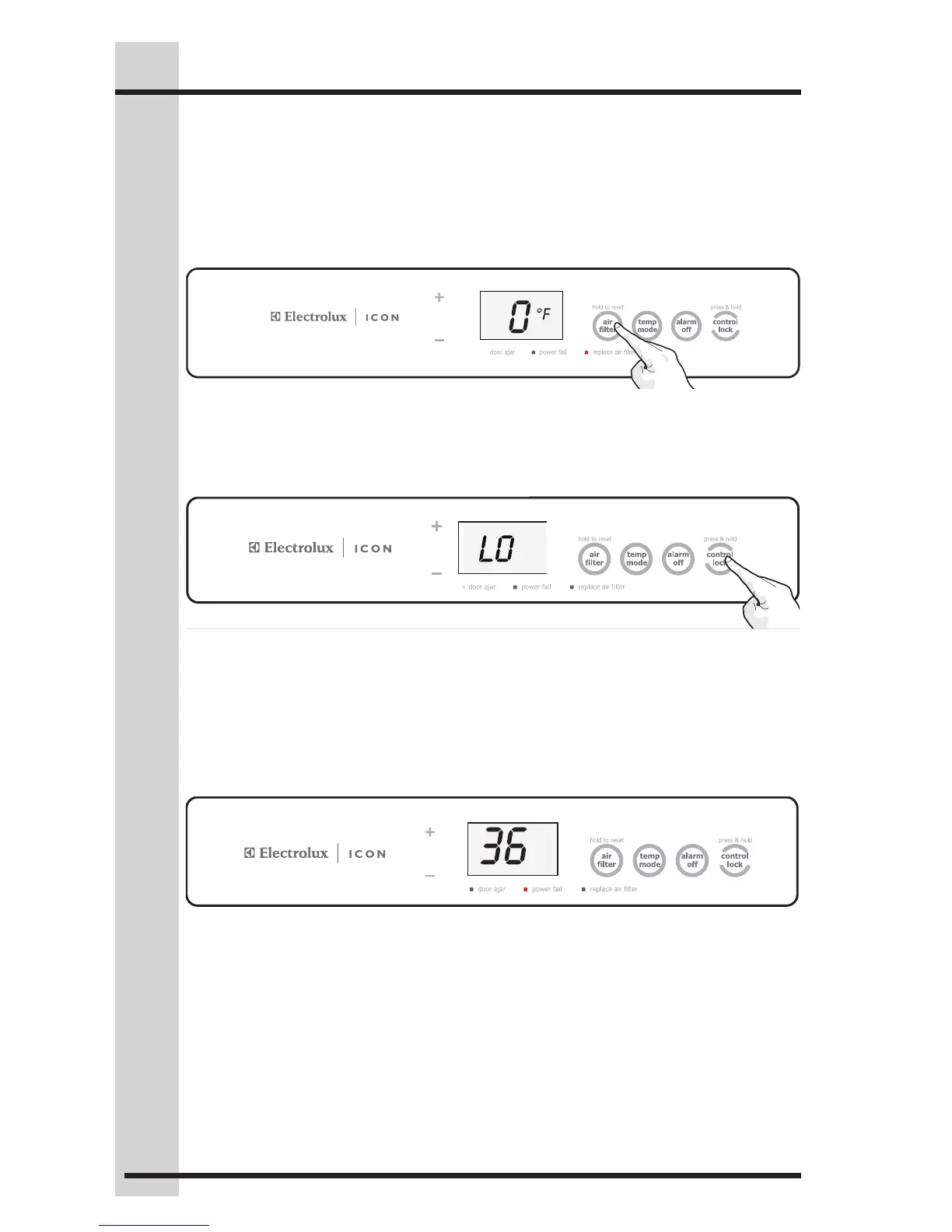 pressed on the control panel, “LO” will be displayed. To unlock the control, press the