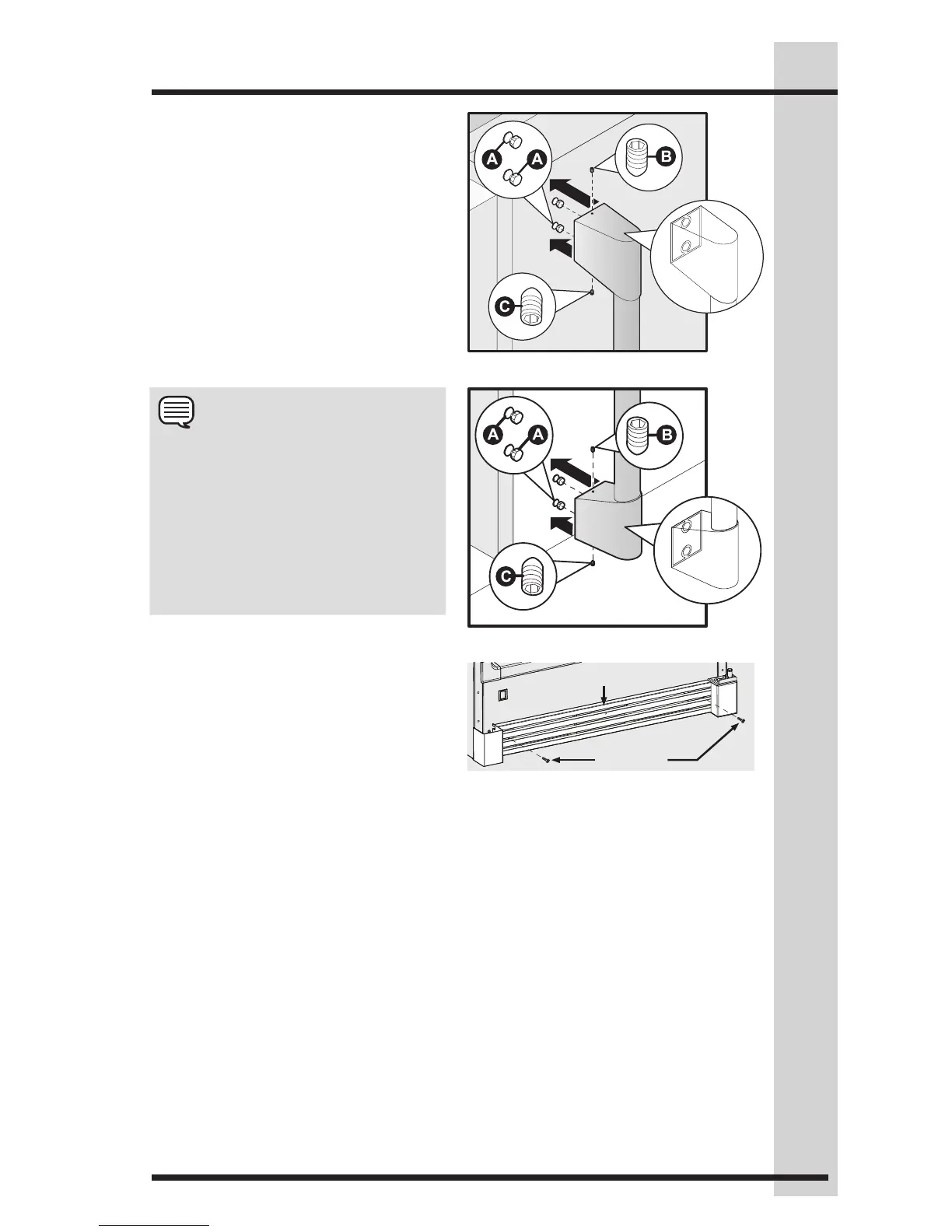 set screws (B) with supplied Allen