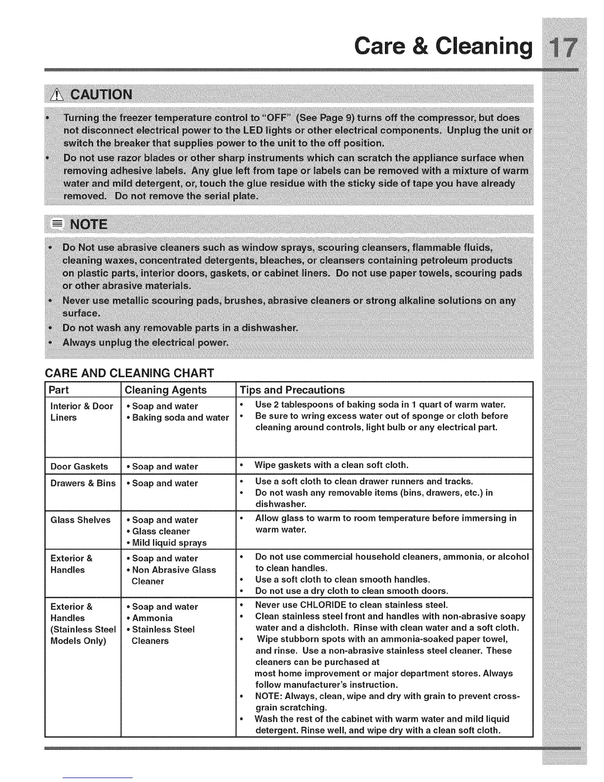 Handles .Ammonia • Clean stainless steelfrontand handles with non=abrasivesoapy