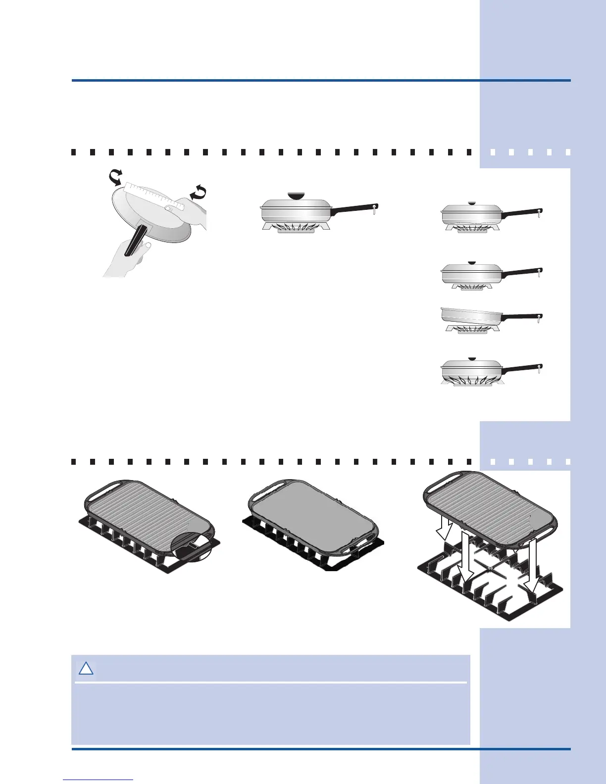 and 2). Do not use pans or other cookware on the griddle. Doing so could damage the